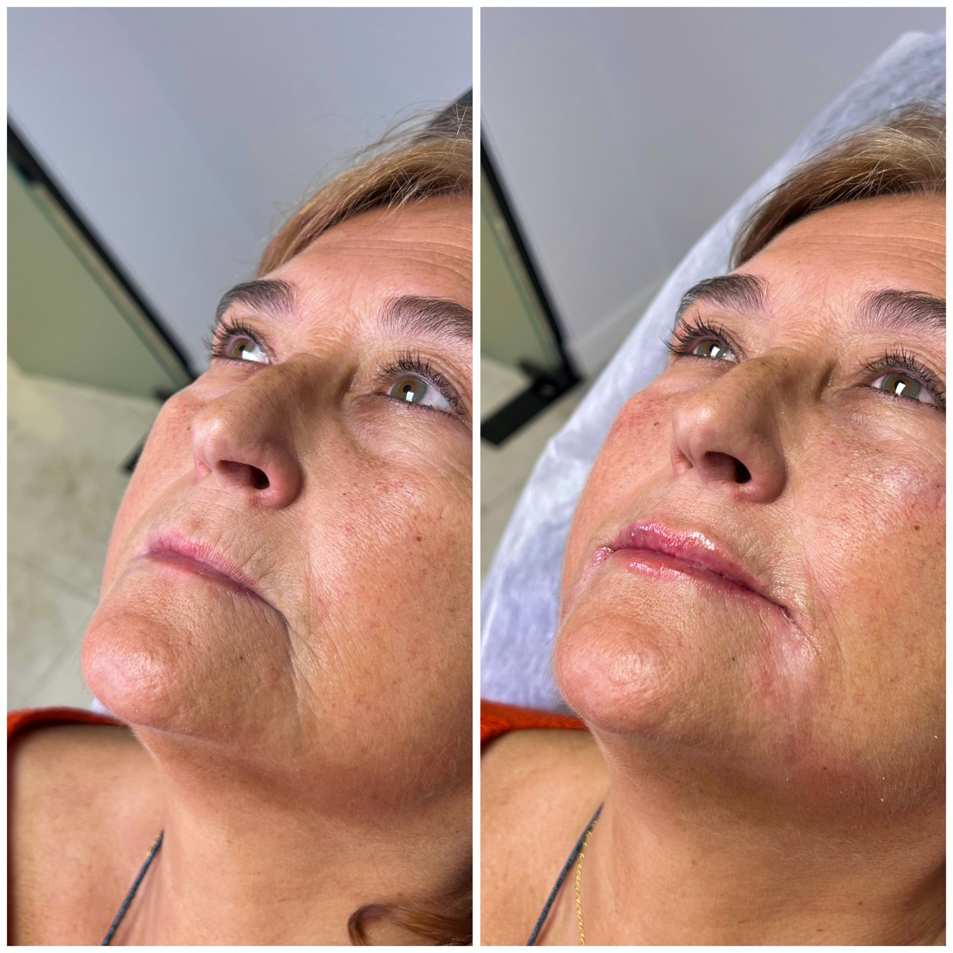 Este tratamiento está indicado para rellenar las arrugas marcadas en la zona de la marioneta sin afectar a la expresión del rostro. Dota de estructura y ofrece un efecto lifting sin necesidad de cirugía en el tercio inferior. Este tratamiento suele combinarse con otras zonas como el relleno de mentón, marcación del arco mandibular, relleno de labios y surco nasogeniano, con el objetivo de ofrecer un rejuvenecimiento integral del tercio inferior.